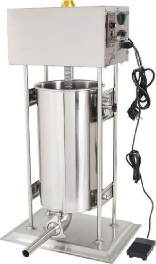 Вертикальный колбасный шприц с электрическим приводом TV-25L является наиболее вместительным и производительным в серии. Объем его загрузочного бункера – 25 л. Исполнение – нержавеющая сталь марки AISI 304, что полностью соответствует стандартам гигиены и безопасности РФ, ЕС и ЕАЭС, принятым для оборудования пищевой отрасли.